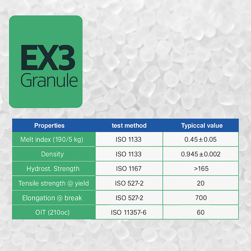 - The EX3 granule is among the most commonly used granules. It is a high-density polyethylene granule used to produce a variety of plastics. EX3 is also known as the high-density extrusion granule since it is most often employed as a raw material in extrusion manufacturing processes.