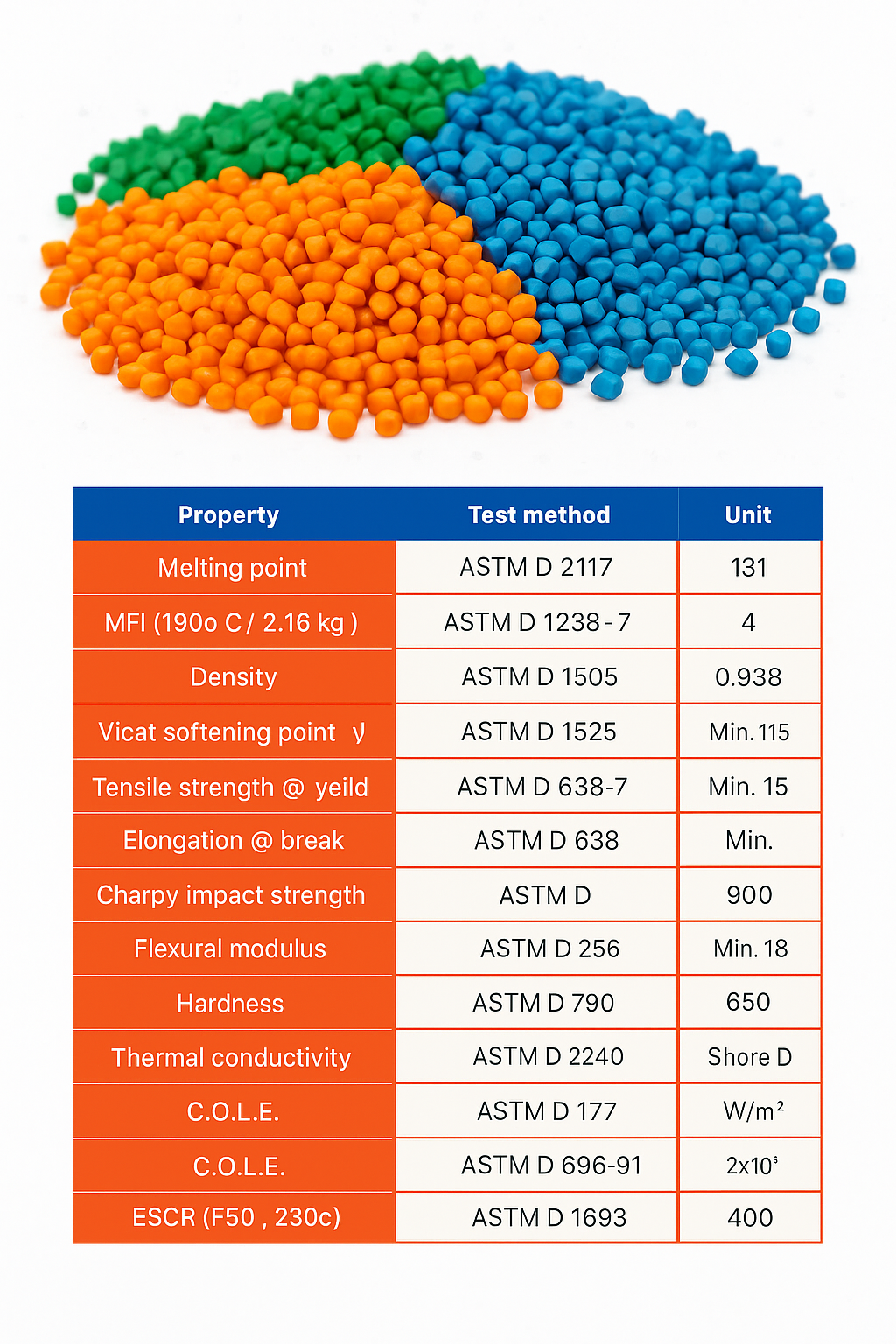 This mixture is comprised of a parent polymer (high–density polyethylene) and some additives, such as antioxidants and pigments. It comes in a granule form and is employed as a strip indicator of gas pipes and the inner wall of corrugated pipes.